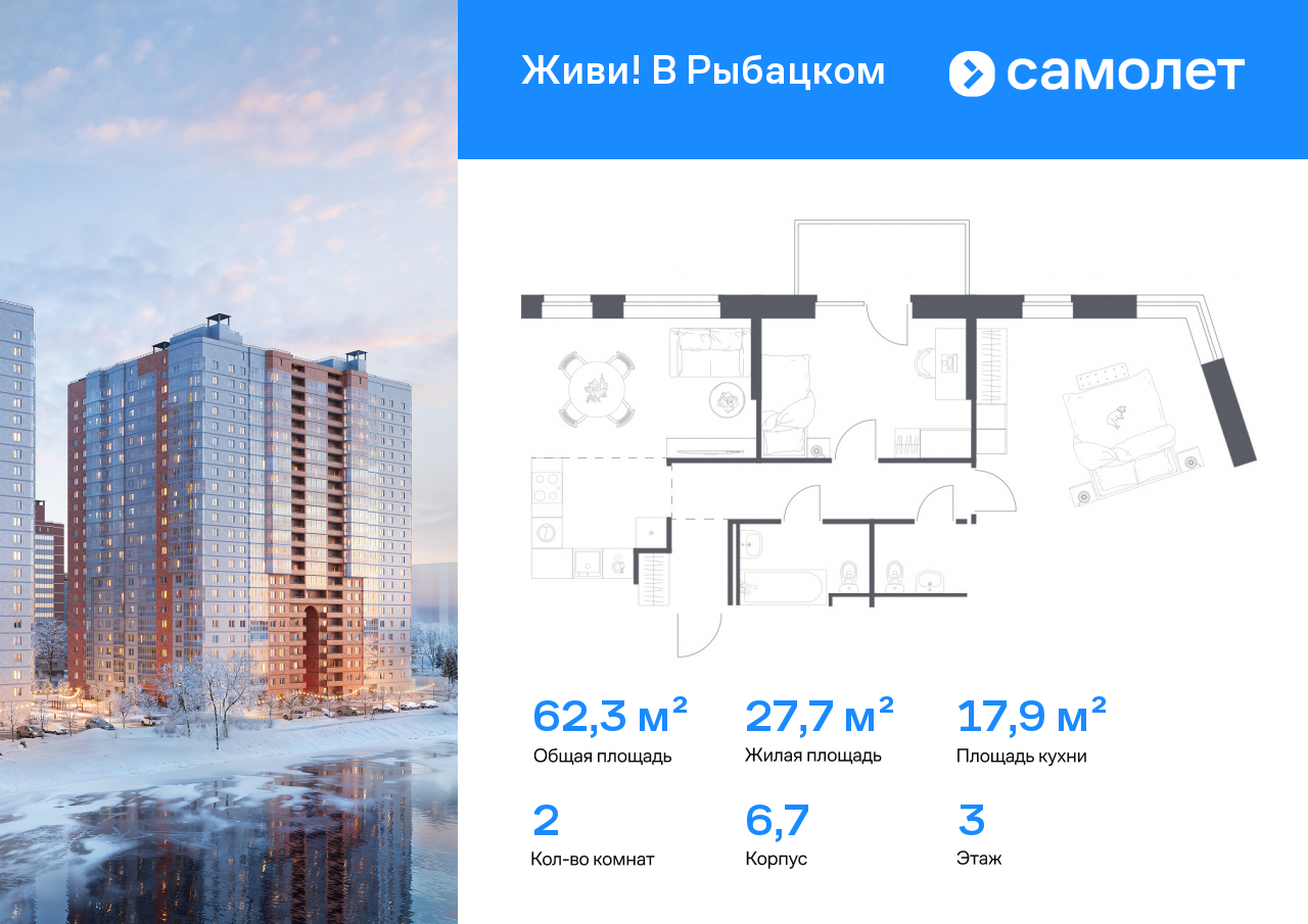 Двухкомнатные квартиры в ЖК Живи! В Рыбацком