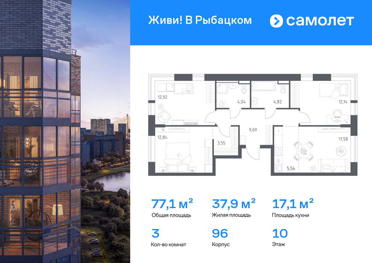 Евро трехкомнатные квартиры в ЖК Живи! В Рыбацком